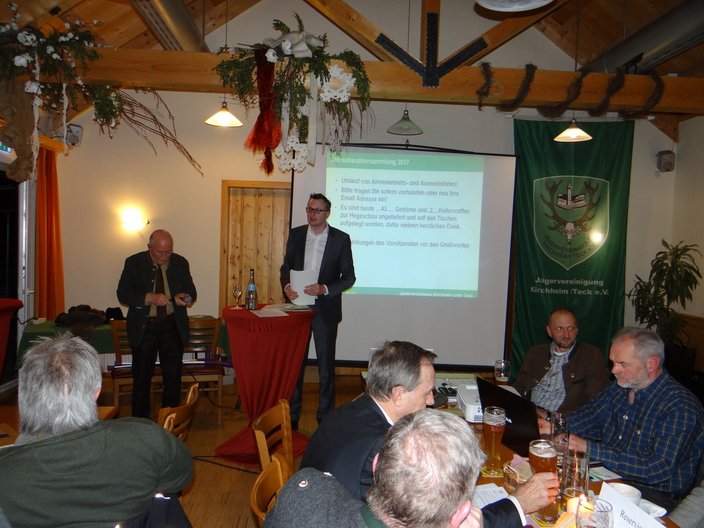Weiterhin als Gäste anwesend Ltd. Forstdirektor Anton Watzek vom Forstamt und unser Bezirksjägermeister Herr Jochen Sokolowski. KJM Budde und BZM Sokolowski beanstandeten in ihrer kurzen Begrüßungsrede die spärlichen Änderungen im JWMG bei den geführten Koalitionsverhandlungen. Die Jäger hätten sich auch eine intensivere Unterstützung von der Landtagsfraktion der CDU erhofft zumal auch Minister Hauk im Dez. 16 in einem Schreiben die Aufgaben der Jäger als unverzichtbar hervorhob.