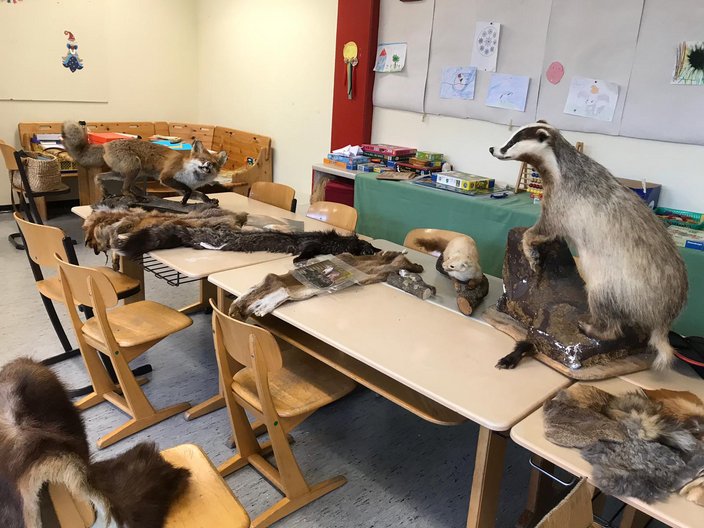Unser neues LoNa-Team bestend hier aus Obfrau (kommissarisch) Gaby Eichler-Schwab, Falknerin Nicole Schmauder und Jagdhelfer Lotta waren bei der Herbstferienbetreuung der Konrad-Wiederholt-Schule in Kirchheim. Thema war "Waldtieren auf der Spur". Anschliessend gab Nicole Schmauder noch spannende Einblicke in die Falknerei!