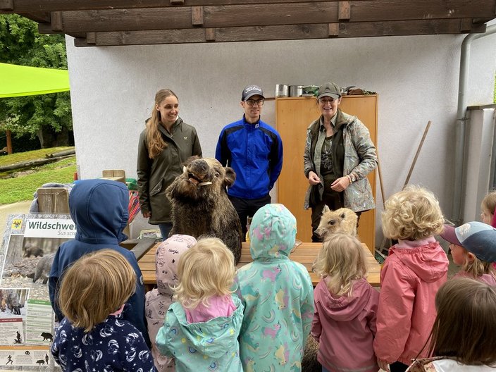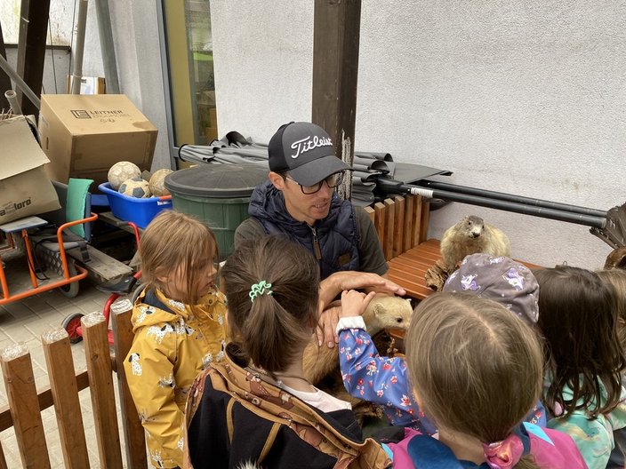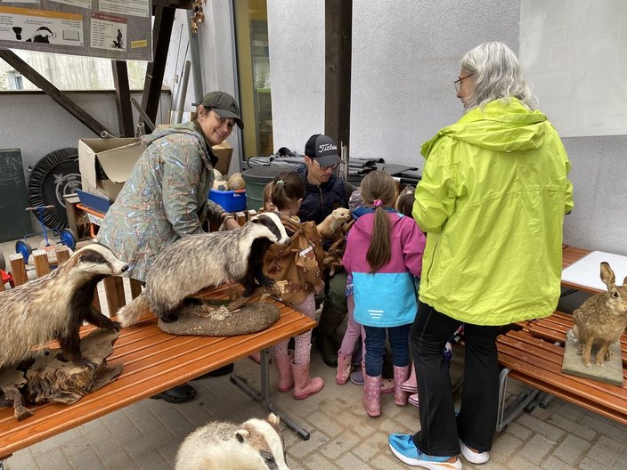 Am 28. Juli war das Lernort-Natur-Team der JV Kirchheim zu Gast im ev. Kindergarten in Weiler. LeNa-Obfrau Gabriele Eichler wurde tatkräftig von ihrem Sohn Philipp Schwab und von Victoria Rieger unterstützt. 40 Interessierte Kiga-Kindern wurden die bekanntesten heimischen Wildtiere vorgestellt. Wir durften viele wissbegierige Fragen beantworten.