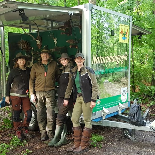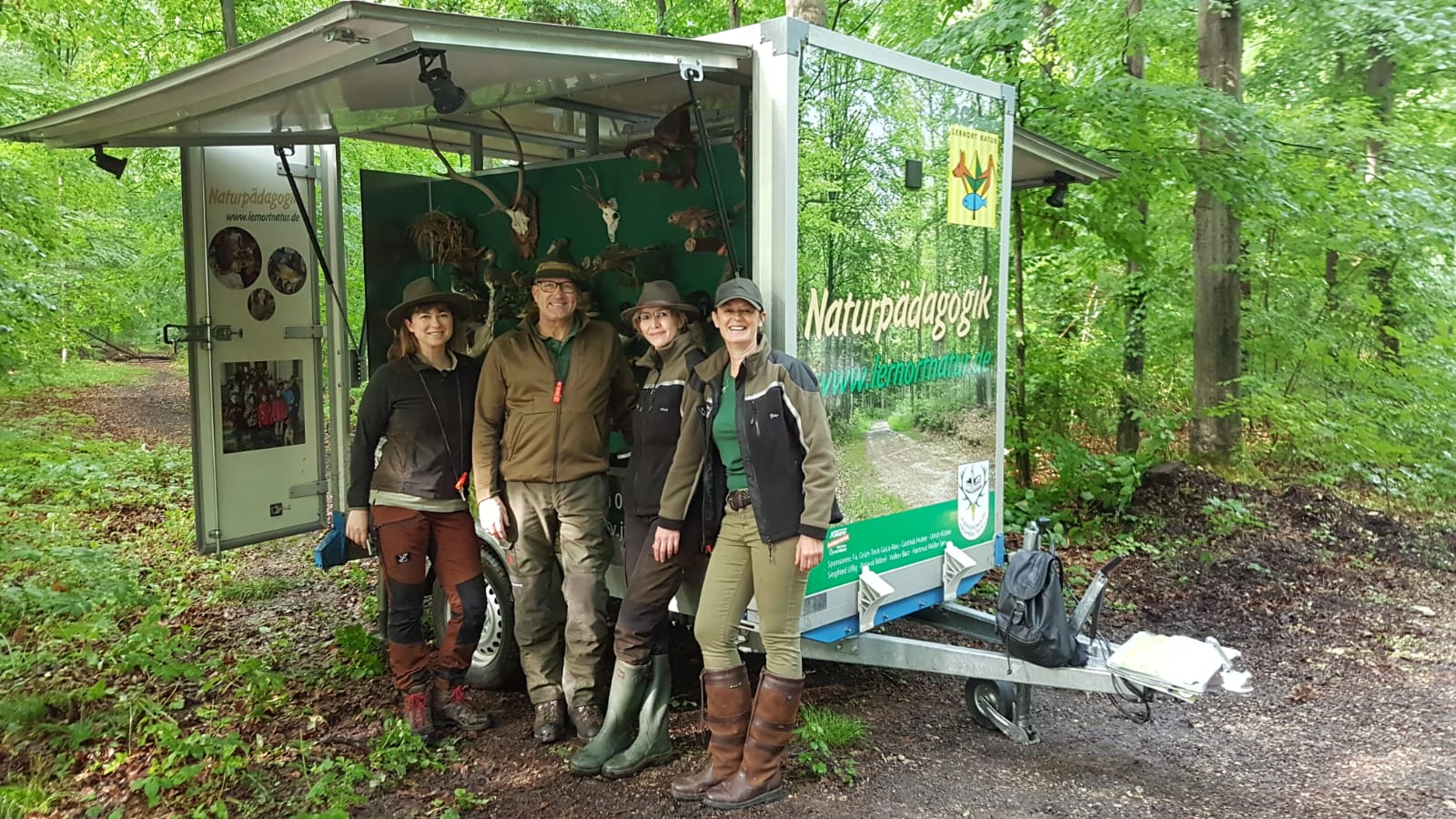 Nach dem das Gewitter ab Morgen zum Glück Richtung Osten abzog, konnte das Team den Lernort/Natur-Wagen im Bergwald stationieren.